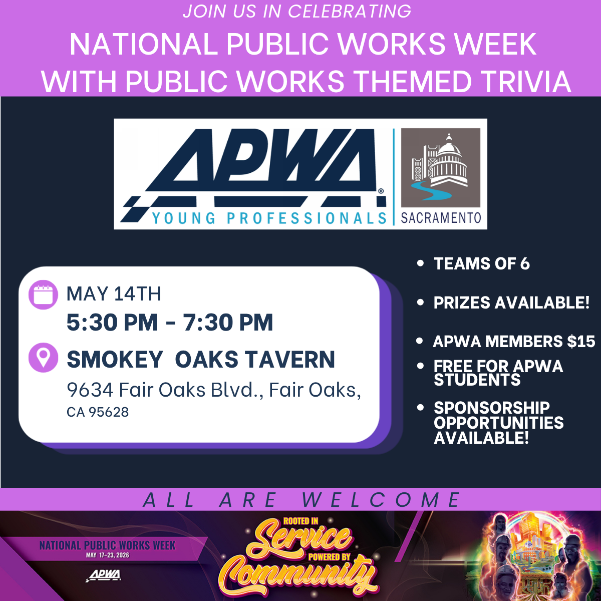 Feeling Smart? YP is hosting a National Public Works Week-themed Trivia night at Smokey Oaks Tavern, Fair Oaks, CA!